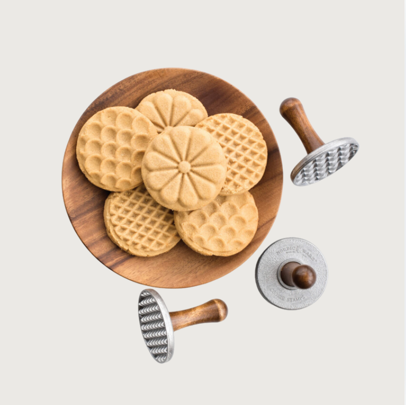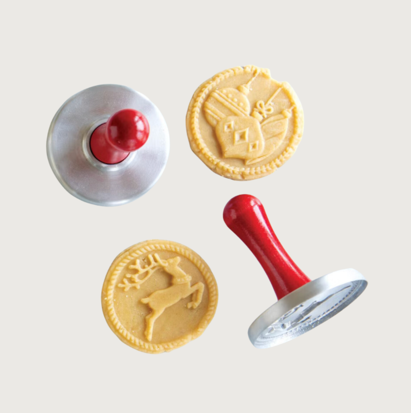 These heavy cast keepsake stamps will amaze and delight. Simply press the pattern into balled cookie dough to make these masterpieces.